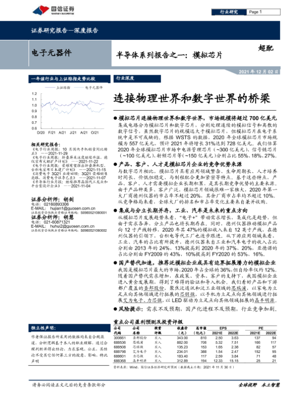 【国信证券】【20211202】电子元器件行业半导体系列报告之一:模拟芯片,连接物理世界和数字世界的桥梁-27页