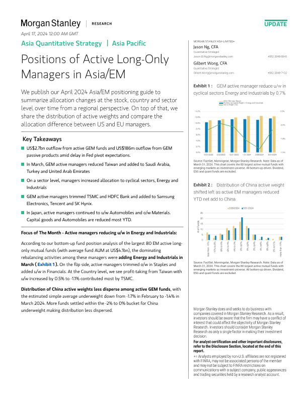 【Morgan Stanley】【20240401】Morgan Stanley-Asia Quantitative Strategy Positions of Active Long-Only Managers in Asia/EM-20页