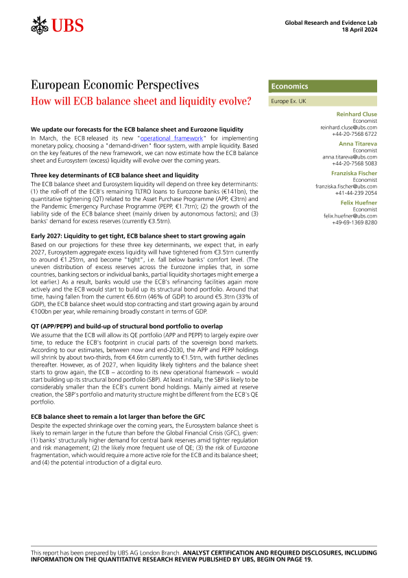 【UBS AG London Branch】【20240418】UBS Economics-European Economic Perspectives How will ECB balance sheet and liquidity evolve?-22页