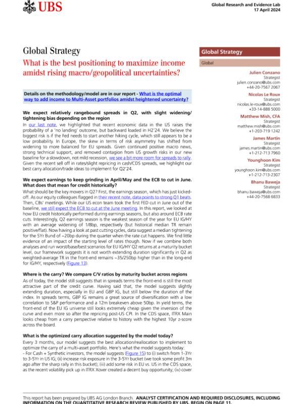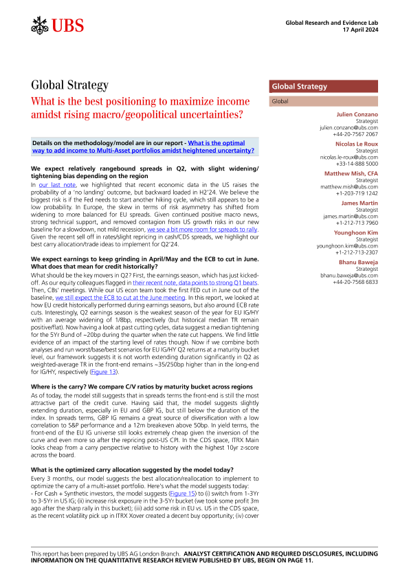 【UBS AG London Branch】【20240417】全球策略:在不确定性增加的情况下如何最大化收入的最佳定位-14页