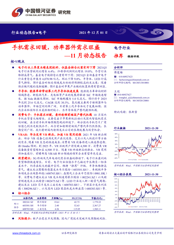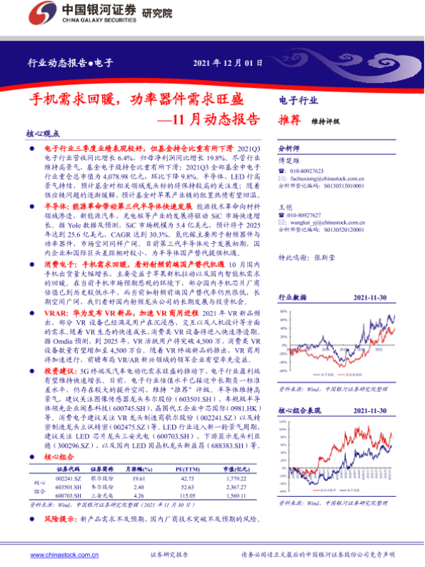 【银河证券】【20211201】电子行业11月动态报告:手机需求回暖,功率器件需求旺盛-29页