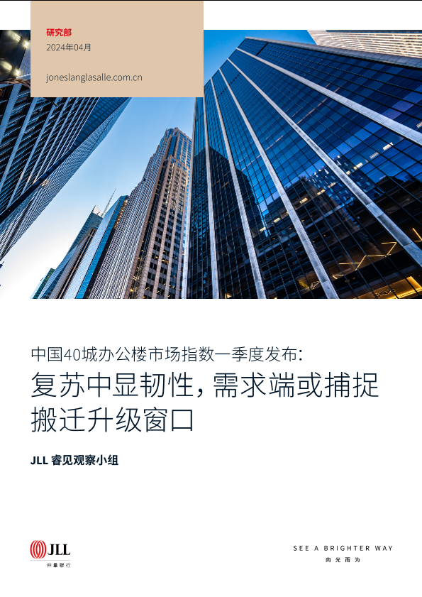 【JLL睿见观察小组】【202404】中国40城办公楼市场指数一季度发布:复苏中显韧性,需求端或捕捉搬迁升级窗口-6页
