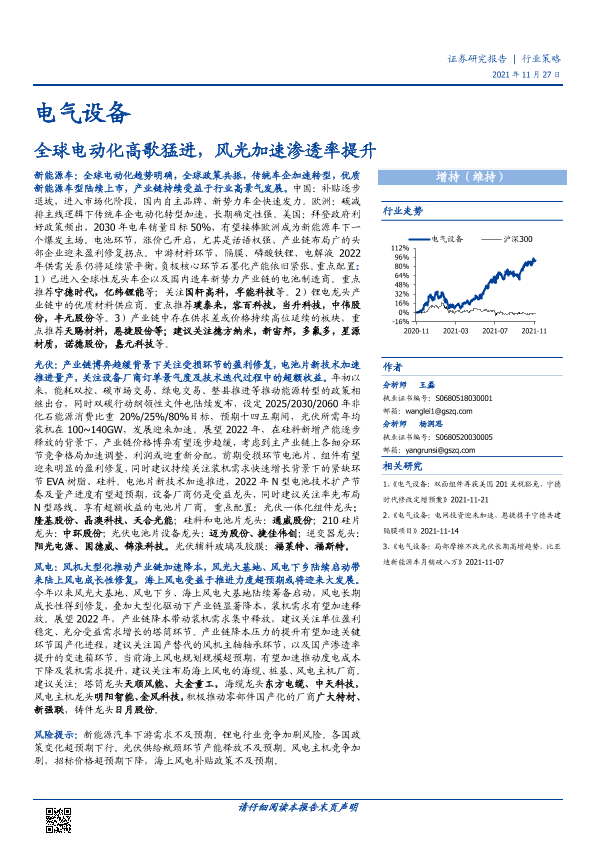 【国盛证券】【20211127】电气设备行业策略:全球电动化高歌猛进,风光加速渗透率提升-59页