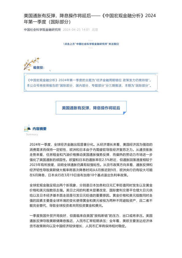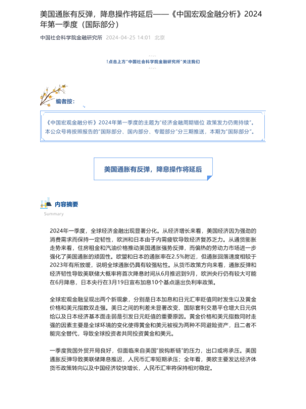 【中国社会科学院金融研究所】【20240101】中国宏观金融分析2024年第一季度(国际部分+国内部分)-21页
