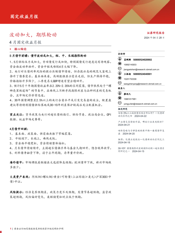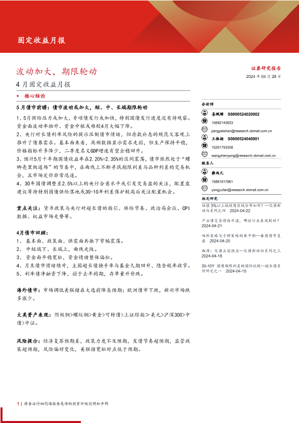 【西部证券】【20240428】4月固定收益月报:波动加大,期限轮动-21页