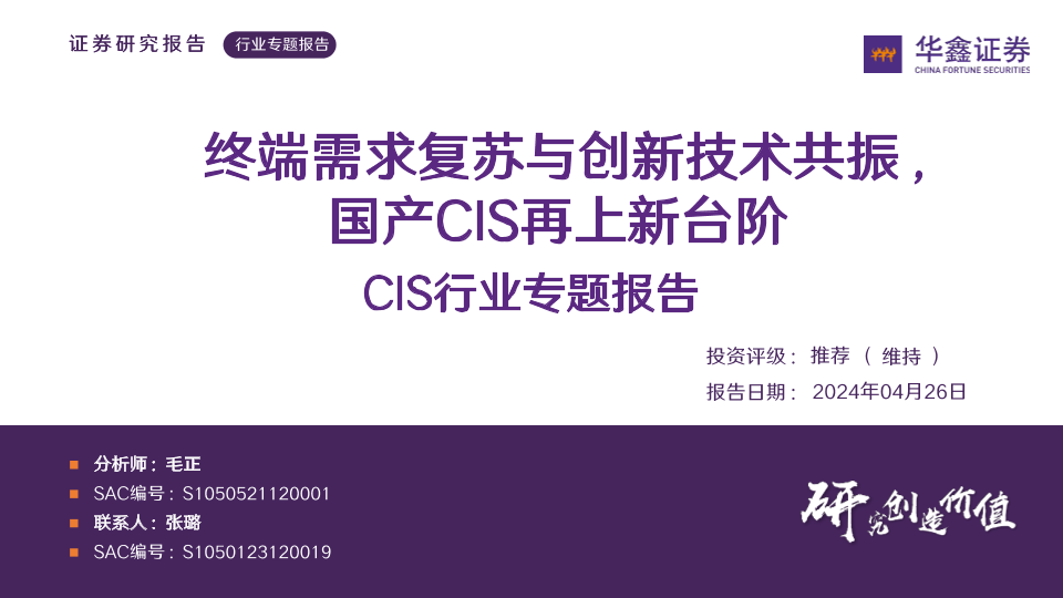 【华鑫证券】【20240426】CIS行业专题报告:终端需求复苏与创新技术共振,国产CIS再上新台阶-42页