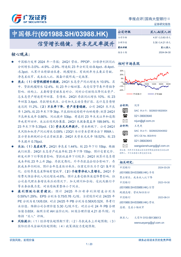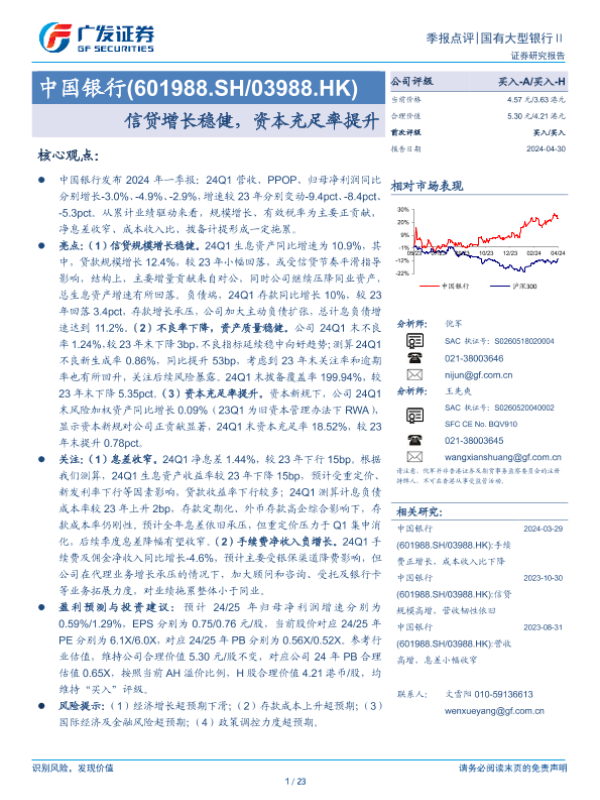 【广发证券】【20240430】中国银行(601988)信贷增长稳健,资本充足率提升-23页