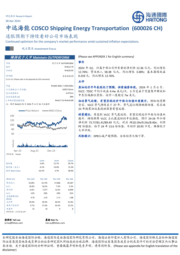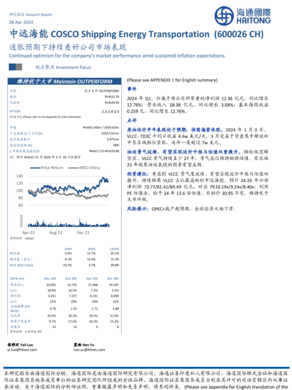 【海通国际】【20240428】中远海能-600026.SH-通胀预期下持续看好公司市场表现-12页