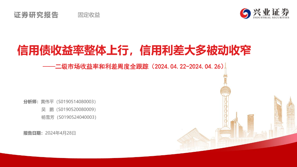 【兴业证券】【20240428】二级市场收益率和利差全跟踪:信用债收益率整体上行,信用利差大多被动收窄-49页