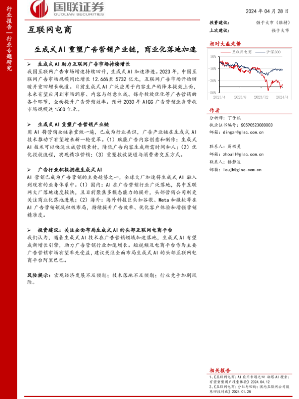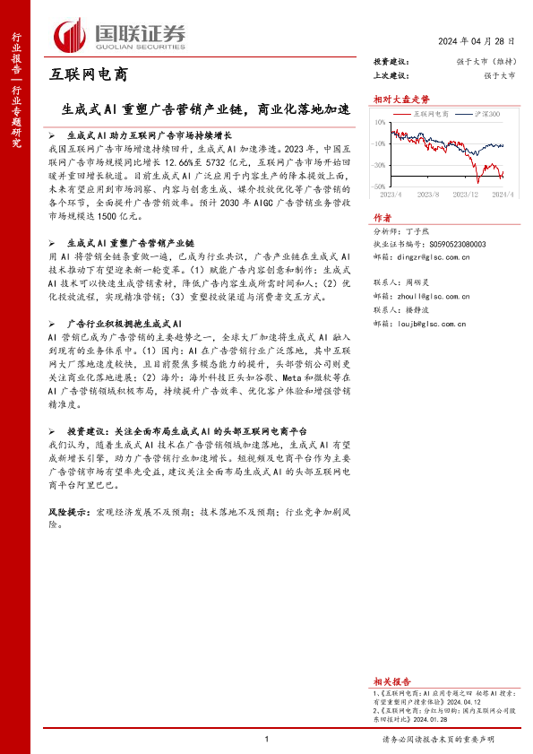 【国联证券】【20240428】互联网电商行业专题研究:生成式AI重塑广告营销产业链,商业化落地加速-16页