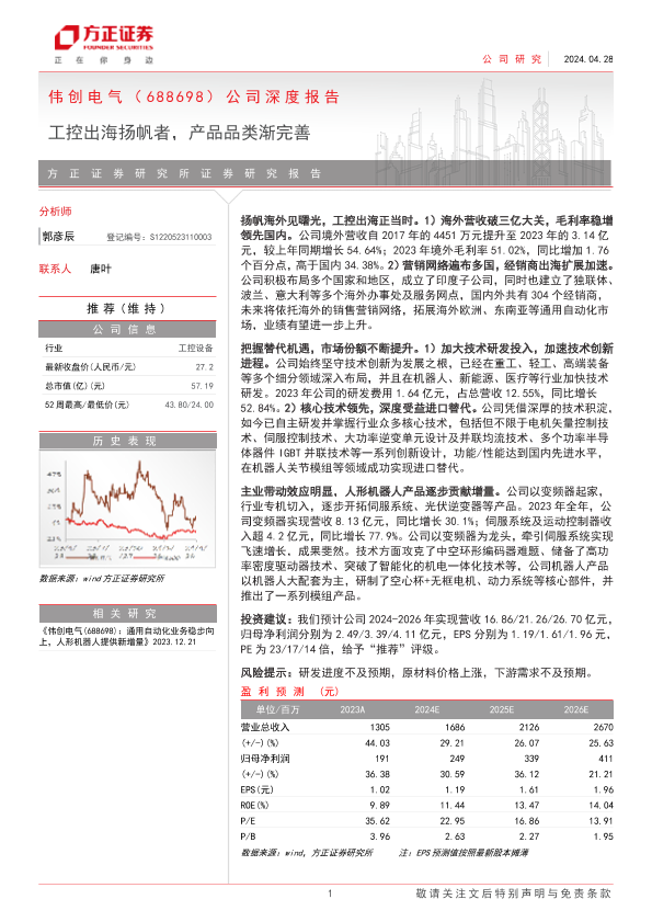 【方正证券】【20240428】伟创电气公司深度报告:工控出海扬帆者,产品品类渐完善-23页