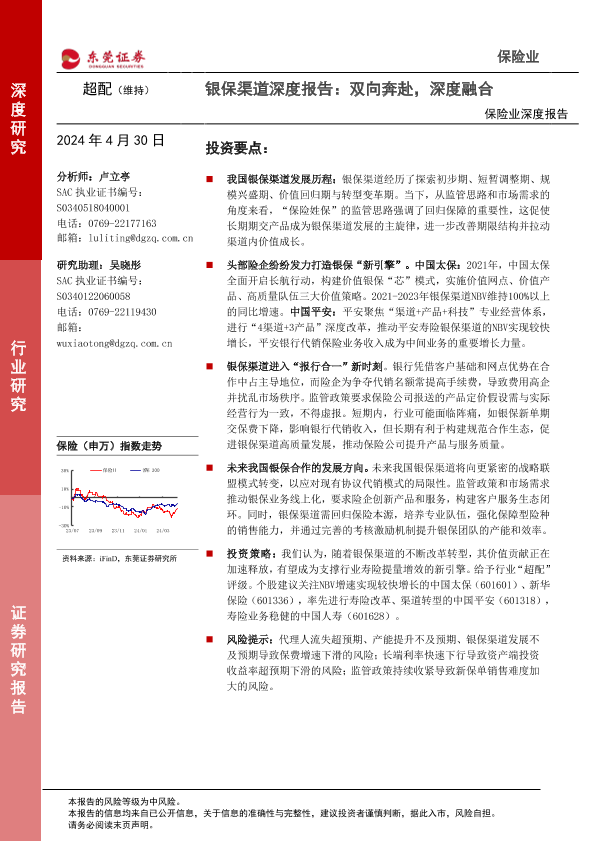 东莞证券 保险业 深度报告 行业分析 银保渠道