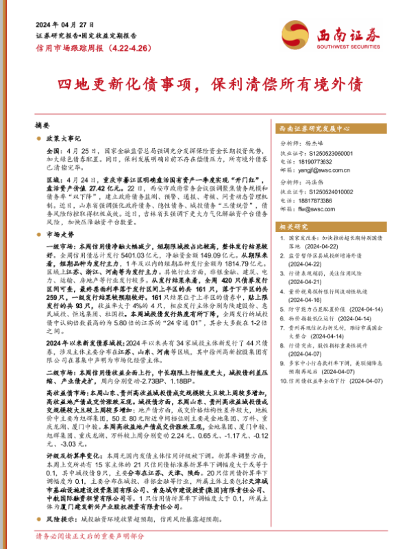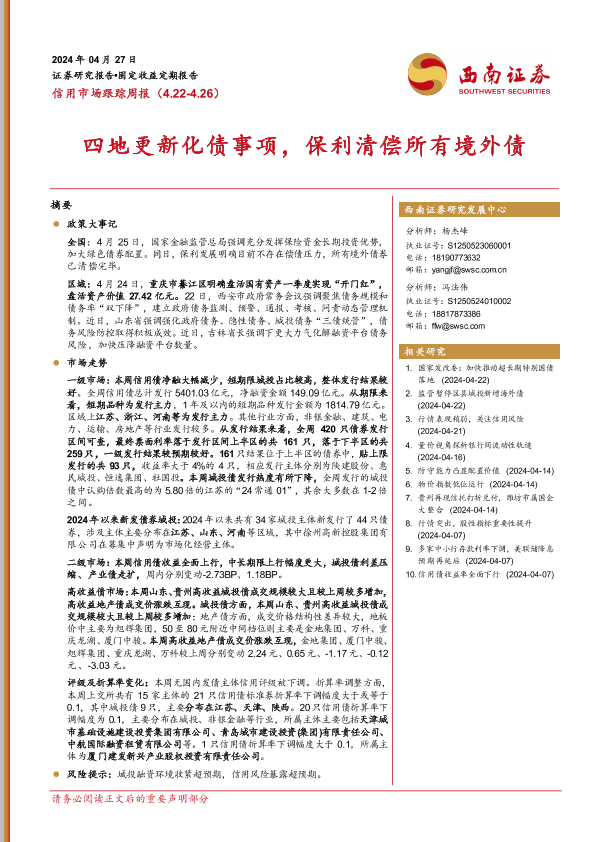【西南证券】【20240427】信用市场跟踪:四地更新化债事项,保利清偿所有境外债-13页