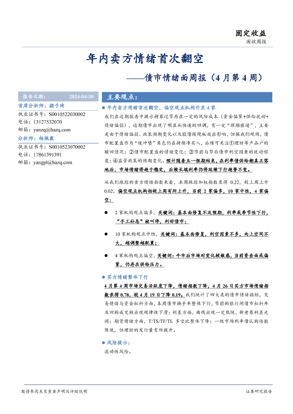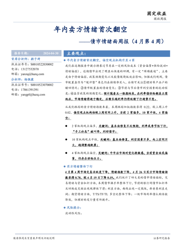 【华安证券】【20240430】债市情绪面:年内卖方情绪首次翻空-13页