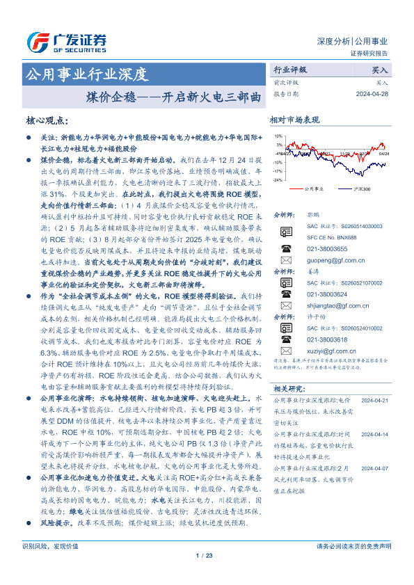 【广发证券】【20240428】公用事业行业深度:开启新火电三部曲,煤价企稳-23页