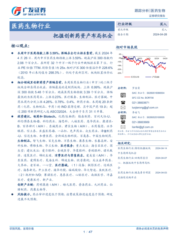 【广发证券】【20240428】医药生物行业:把握创新药资产布局机会-47页