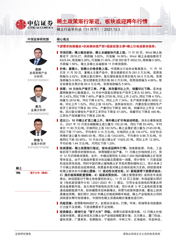 【中信证券】【20211203】稀土行业半月谈(11月下):稀土政策渐行渐近,板块或迎跨年行情-38页
