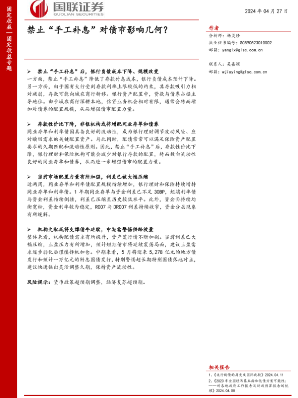 【国联证券】【20240427】禁止“手工补息”对债市影响几何?-10页