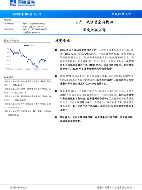 【国海证券】【20240428】固定收益点评:5月,关注资金面扰动-10页