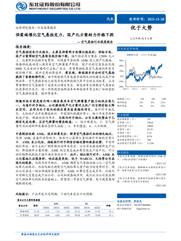 【东北证券】【20211128】供需端催化空气悬挂发力,国产化方案助力价格下探---空气悬挂行业深度报告-30页
