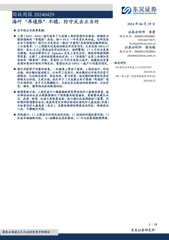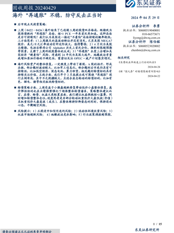 【东吴证券】【20240429】固收:海外“再通胀”不稳,防守反击正当时-15页