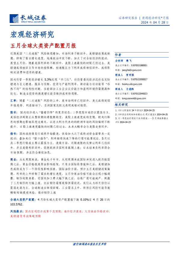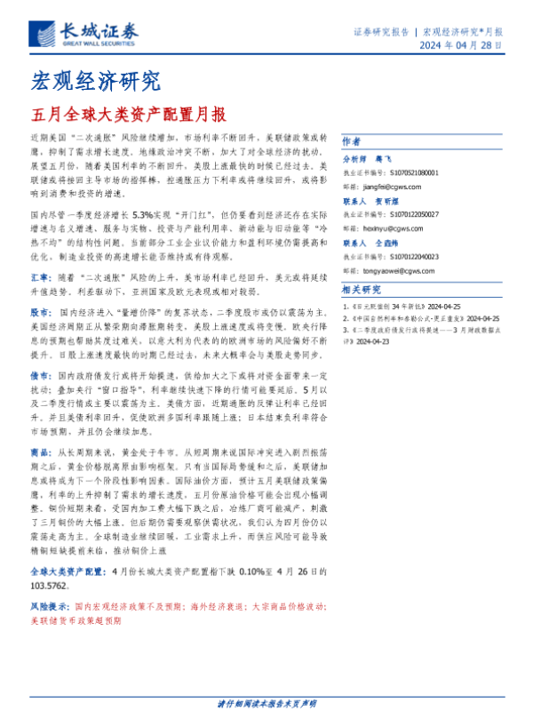 【长城证券】【20240428】五月全球大类资产配置月报-20页