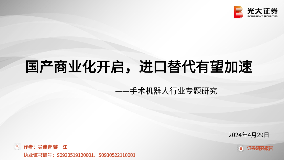 【光大证券】【20240429】手术机器人行业专题研究:国产商业化开启,进口替代有望加速-30页
