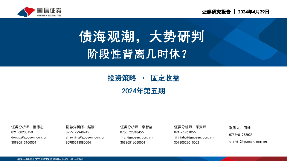 【华安证券】【20240429】投资策略·固定收益2024年第五期:债海观潮,大势研判,阶段性背离几时休?-50页