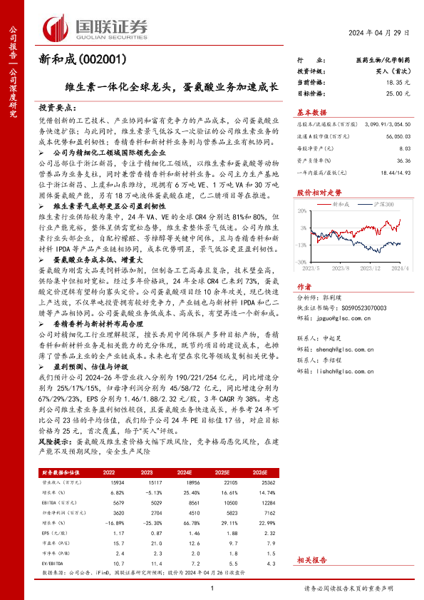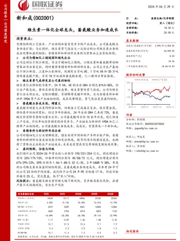 【国联证券】【20240429】新和成(002001)维生素一体化全球龙头,蛋氨酸业务加速成长-31页