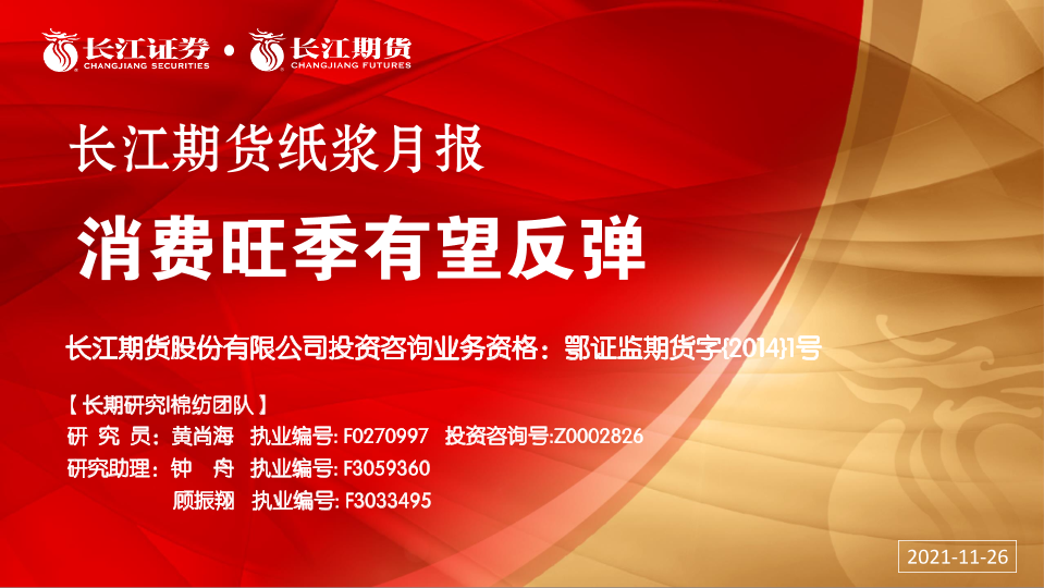 【长江期货】【20211126】纸浆月报:消费旺季有望反弹-20页