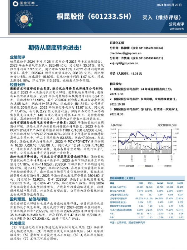 【国金证券】【20240426】桐昆股份-601233.SH-期待从磨底转向进击!-10页
