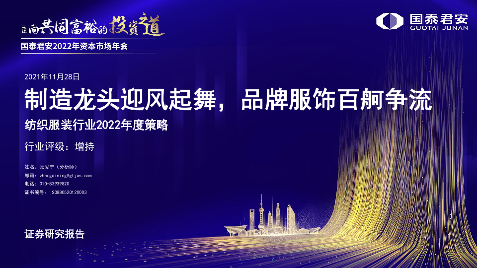 【国泰君安证券】【20211128】纺织服装行业2022年度策略:制造龙头迎风起舞,品牌服饰百舸争流-41页