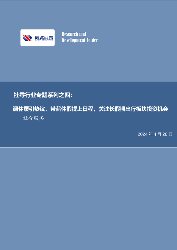 【信达证券】【20240426】社零行业专题系列之四:调休屡引热议,带薪休假提上日程,关注长假期出行板块投资机会-12页