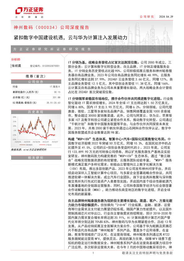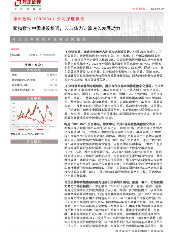 【方正证券】【20240429】神州数码(000034)公司深度报告:紧扣数字中国建设机遇,云与华为计算注入发展动力-28页