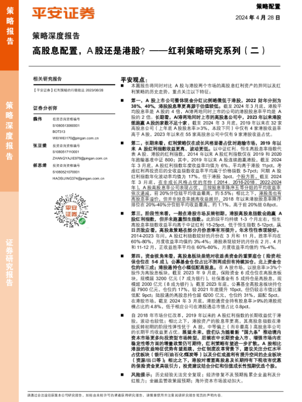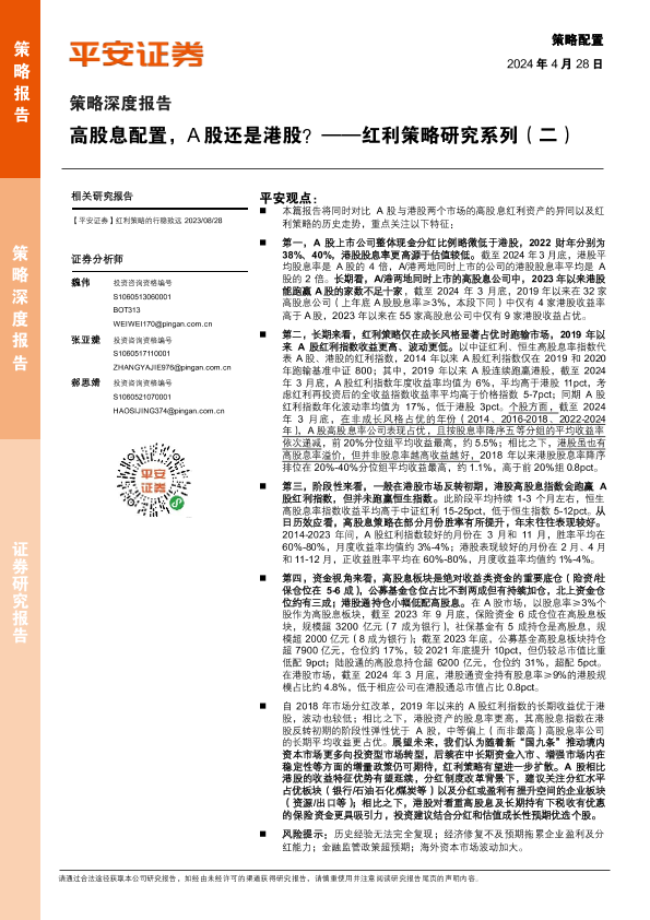 【平安证券】【20240428】策略深度报告-高股息配置,A股还是港股?-19页