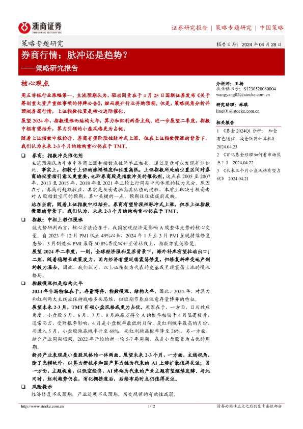 【浙商证券】【20240428】券商行情:脉冲还是趋势?-12页