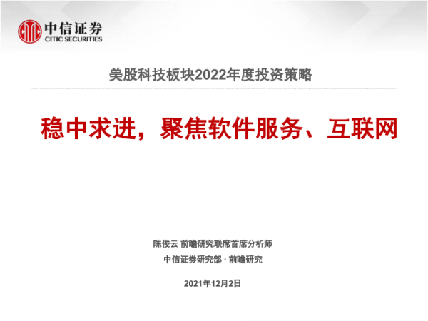 【中信证券】【20211202】美股科技板块2022年度投资策略:稳中求进,聚焦软件服务、互联网-20页