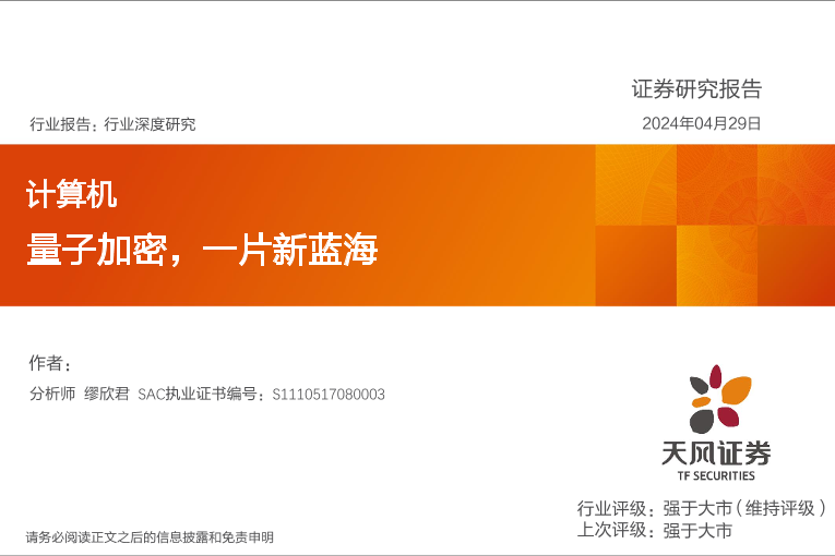 【天风证券】【20240429】计算机行业报告:量子加密,一片新蓝海-15页