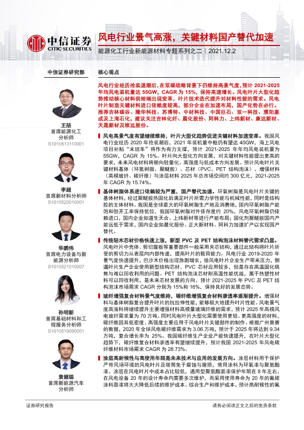【中信证券】【20211202】能源化工行业新能源材料专题系列之二:风电行业景气高涨,关键材料国产替代加速-49页
