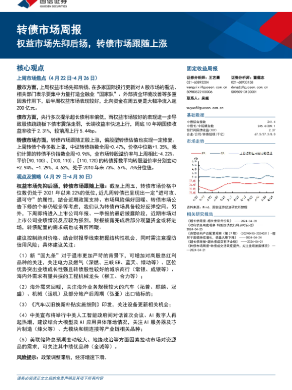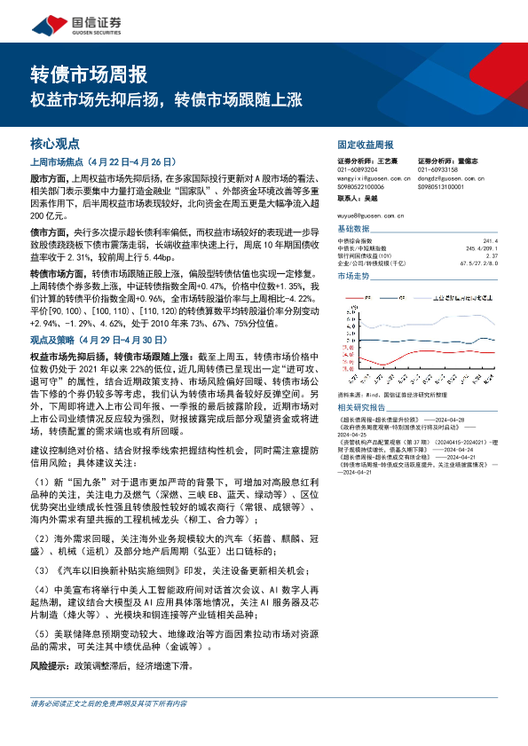 【国信证券】【20240429】转债市场:权益市场先抑后扬,转债市场跟随上涨-13页