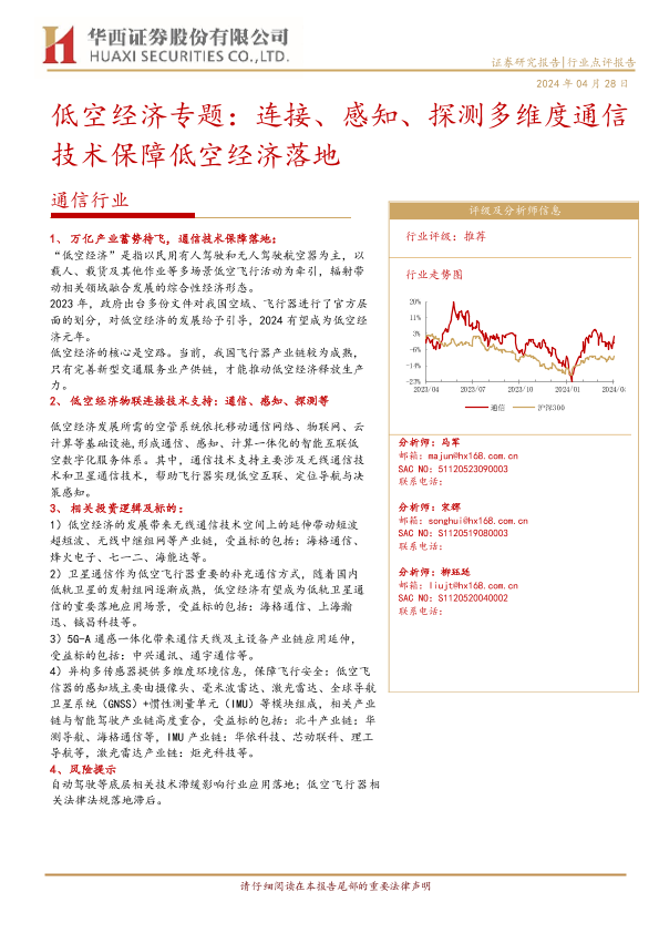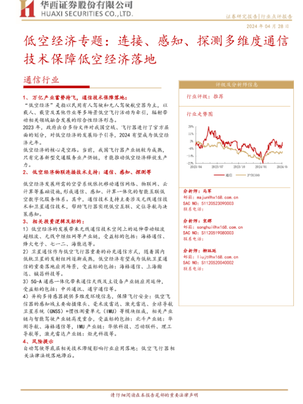 【华西证券】【20240428】通信行业低空经济专题:连接、感知、探测多维度通信技术保障低空经济落地-10页