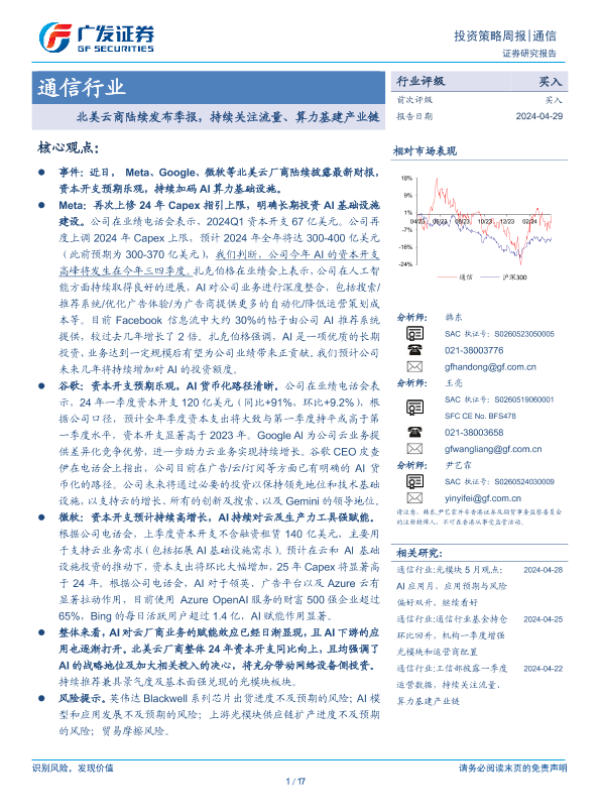 【广发证券】【20240429】通信行业:北美云商陆续发布季报,持续关注流量、算力基建产业链-19页