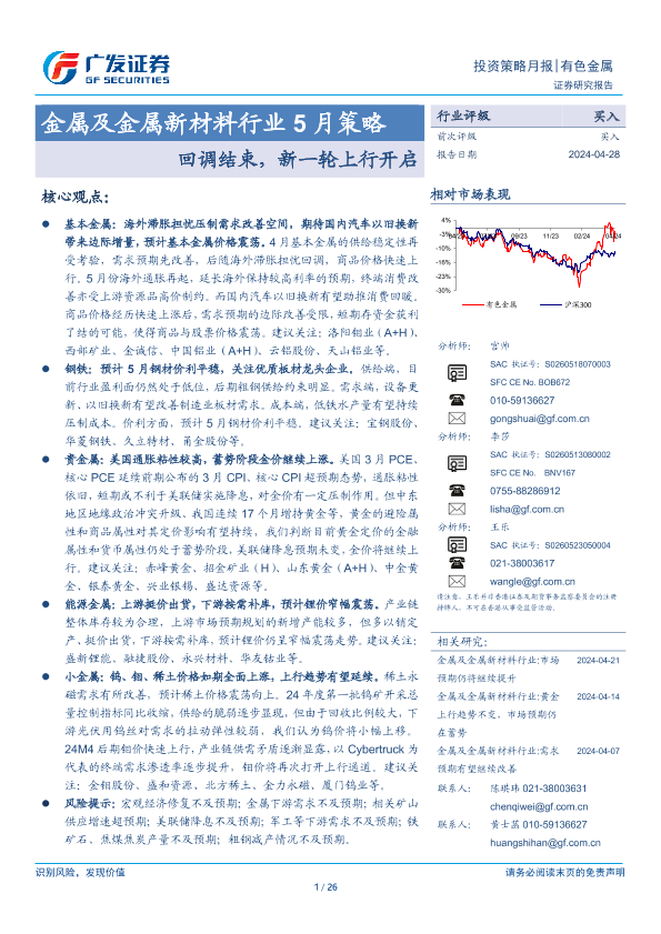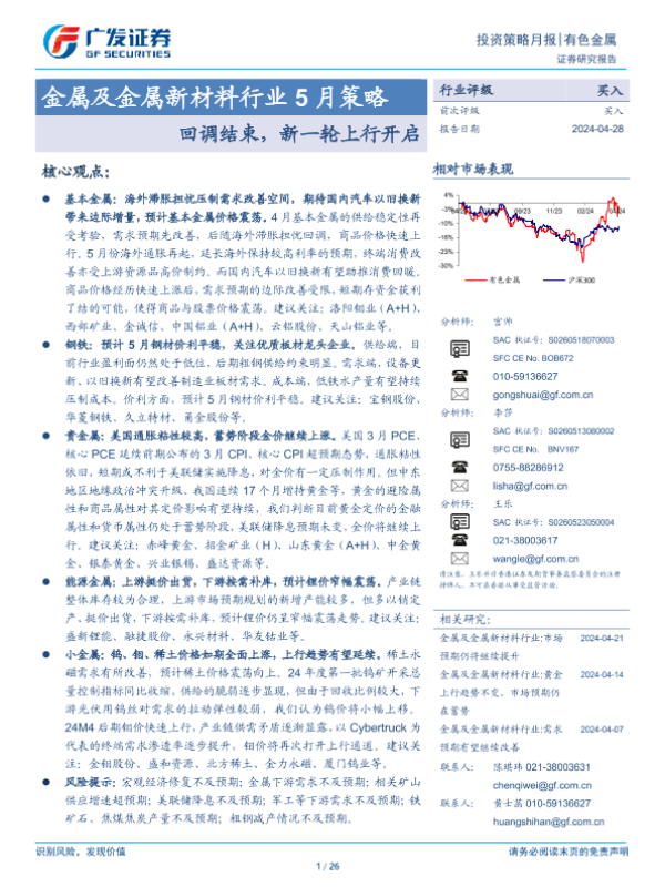 【广发证券】【20240428】金属及金属新材料行业5月策略:回调结束,新一轮上行开启-26页