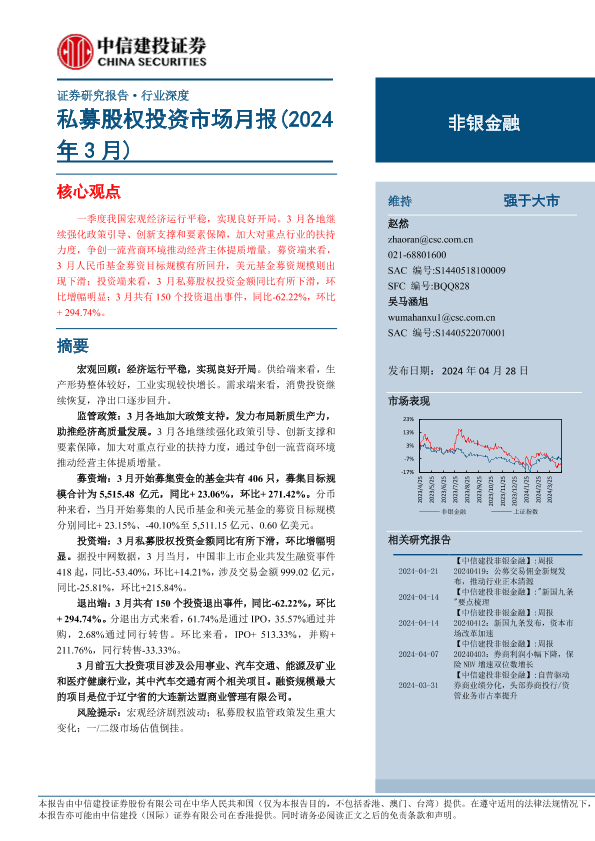 【中信建投证券】【20240428】非银金融行业:私募股权投资市场月报(2024年3月)-22页