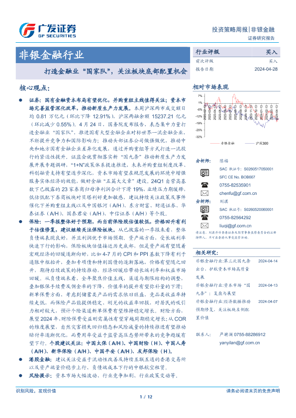 【广发证券】【20240428】非银金融行业:打造金融业“国家队”,关注板块底部配置机会-12页