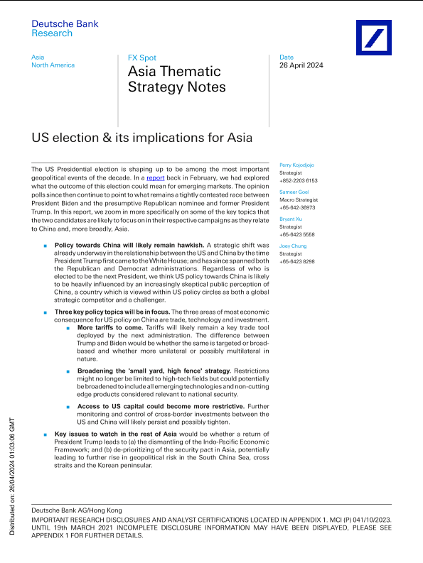 【Deutsche Bank】【20240426】US election & its implications for Asia-20页