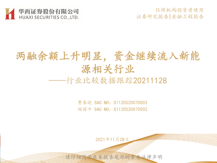 【华西证券】【20211128】行业比较数据跟踪:两融余额上升明显,资金继续流入新能源相关行业-23页
