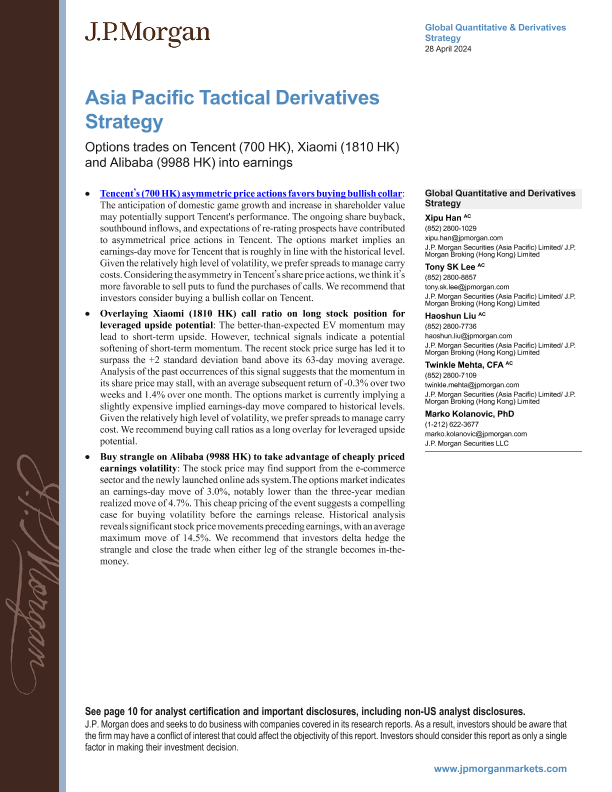 【J.P. Morgan】【20240428】亚太区战术衍生品策略:腾讯、小米和阿里巴巴的期权交易-16页