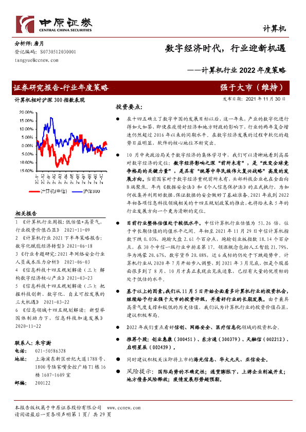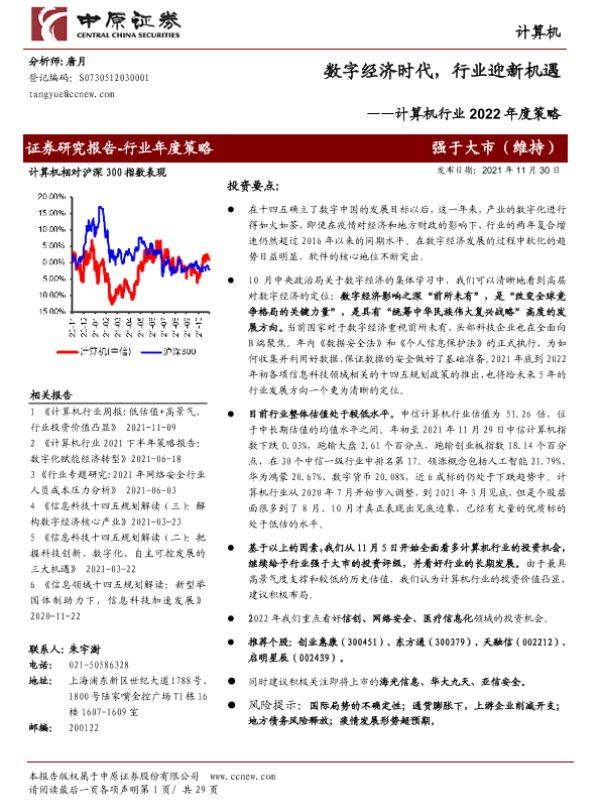 【中原证券】【20211130】计算机行业2022年度策略:数字经济时代,行业迎新机遇-29页