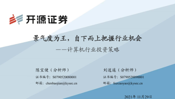【开源证券】【20211129】计算机行业投资策略:景气度为王,自下而上把握行业机会-61页